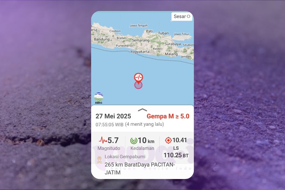 PACITAN, HAWA – Warga Pacitan dikejutkan guncangan hebat Gempa M 5,7 yang berpusat di wilayah daratan pada Selasa (27/1/2026) pagi pukul 08.20 WIB.